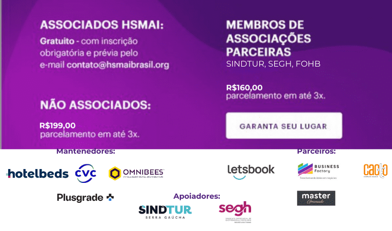 - Associados HSMAI – Cortesia. Confirme sua participação no contato@hsmaibrasil.org ou whats 11 96487-4359