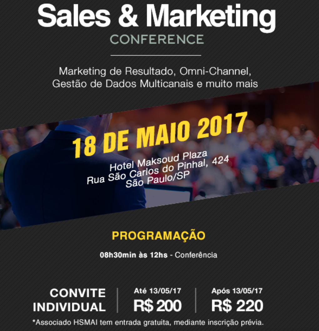 Tema: Marketing de Resultado, Omni-Channel, Gestão de Dados Multicanais e muito mais. Imperdível! Veja quem esteve presente e os palestrantes da Sales Conference 2017 da HSMAI, que aconteceu dia 18/05 no Hotel Maksoud São Paulo. 70 executivos da indústria assistiram palestras e debateram sobre Marketing de Resultado, Omni-Channel, Gestão de Dados Multicanais e muito mais.